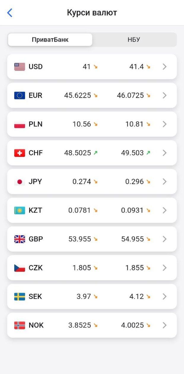Курс валют в Приватбанку: