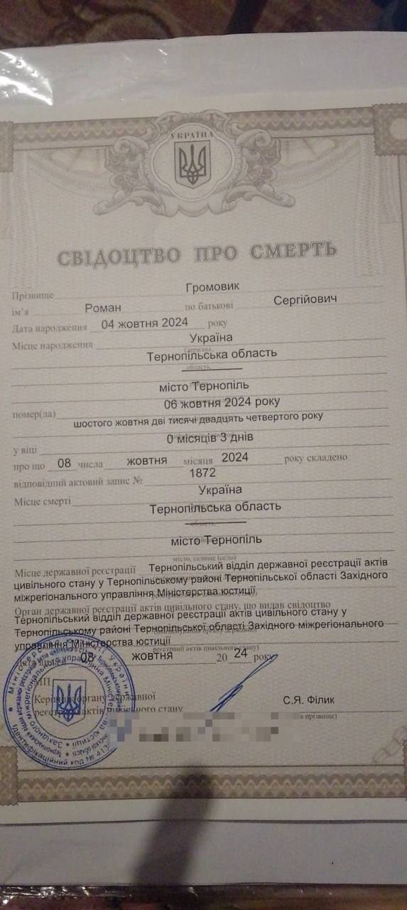 Сьомого жовтня родина Громовиків поховала новонародженого Ромчика. Батько Сергій встиг побачити сина лише на світлині, а ось особисто так і не познайомилися.