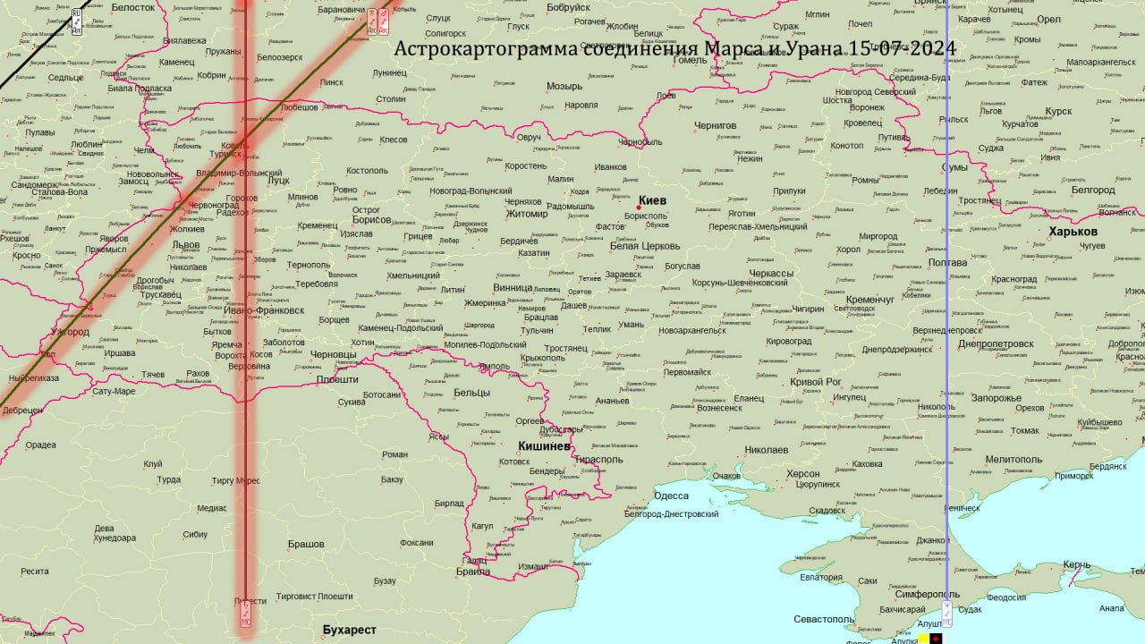 Якщо подивитися астрокартограму з’єднання Урана та Марса, то лінія, де Марс та Уран будуть заходити в момент точного аспекту, проходить кордоном з Польщею, Волинською, Львівською та Закарпатською областями. Це друга вказівка на небезпеку ударів по західних областях України.
