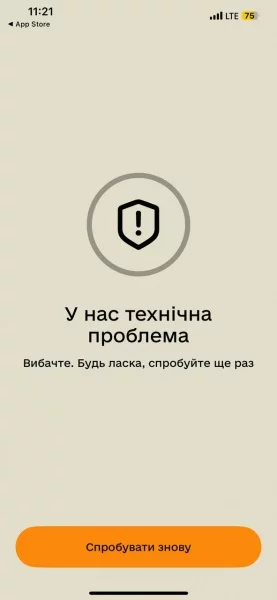 Користувачі зазначають, що застосунок довго завантажується. Після цього на головному екрані висвітлюється вікно про технічну проблему або ж про відсутність з’єднання.