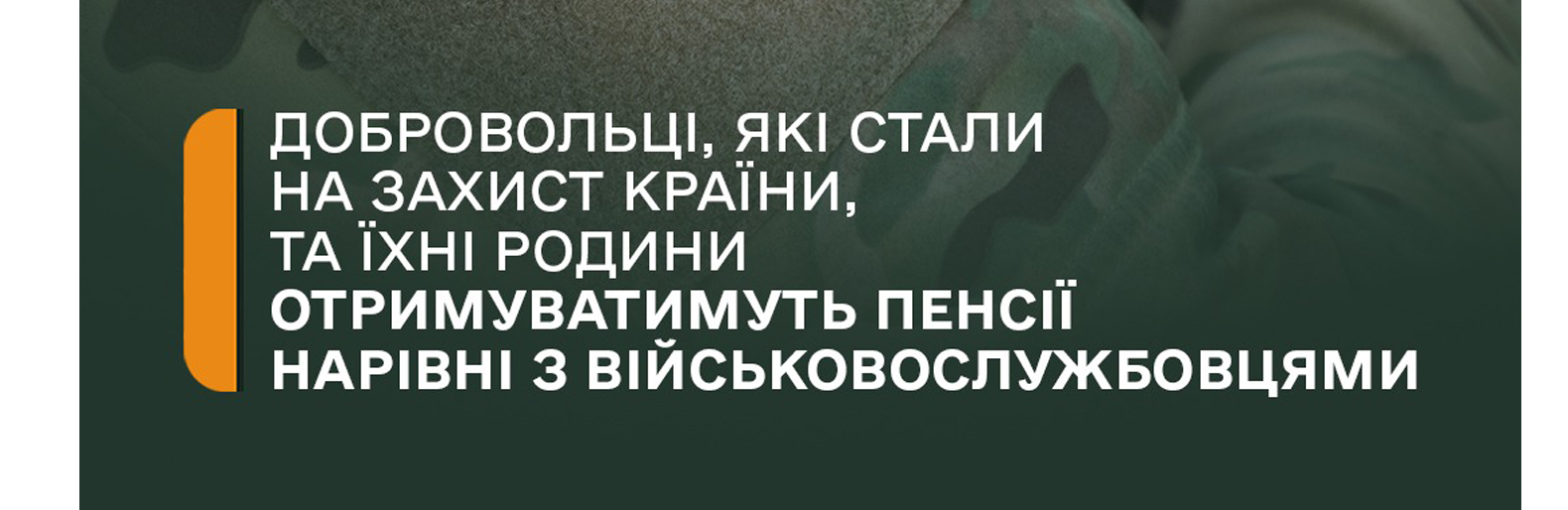 Учасники бойових дій з числа цивільних осіб, які на початку повномасштабного російського вторгнення стали на захист України, проте не встигли оформитися до офіційних військових формувань чи правоохоронних органів, зможуть отримувати пенсії на рівні з військовослужбовцями. А родини загиблих Захисників і Захисниць України із числа добровольців матимуть можливість отримувати пенсії по втраті годувальника на рівні з родинами загиблих військовослужбовців.