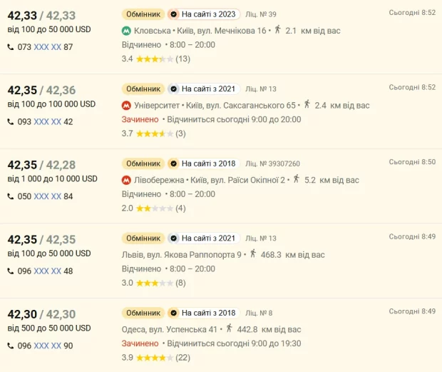 В обмінниках українських банків та спеціальних обмінних пунктах вартість валюти є значно вищою. Показники змінюються кожного дня і на сьогоднішній день вони є такими.