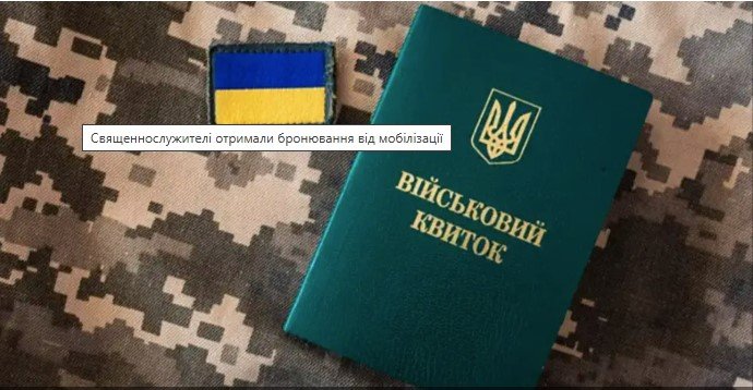 Кабінет Міністрів України вніс зміни до Порядку бронювання, дозволивши бронювати священнослужителів від мобілізації. До 50% священнослужителів релігійних організацій можуть бути заброньовані, а релігійні організації внесені до переліку критично важливих установ. Священнослужителі отримали бронювання від мобілізації.