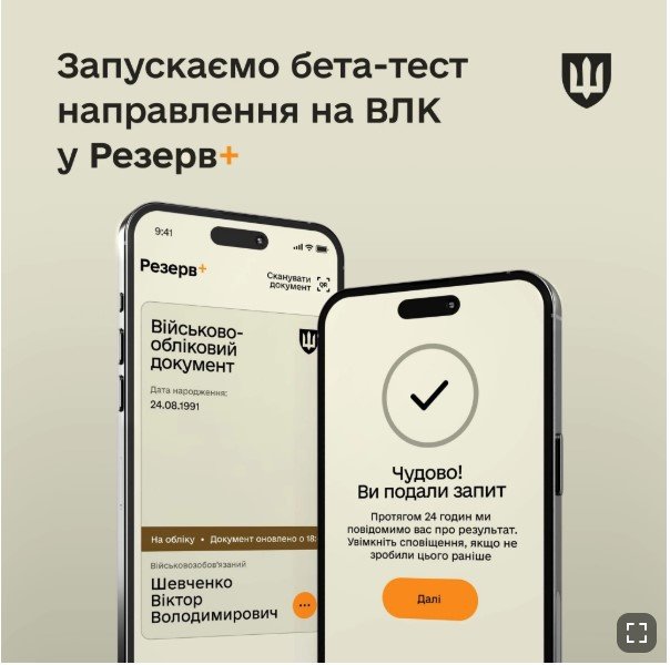 “Черги, черги – і знову черги до ТЦК… Але скоро це припиниться. Сьогодні розпочинаємо бета-тестування електронних направлень на ВЛК у “Резерв+”. Щоб запустити зручну послугу, хочемо зібрати ваші відгуки і одразу покращити функціонал”, – зазначила посадовиця.