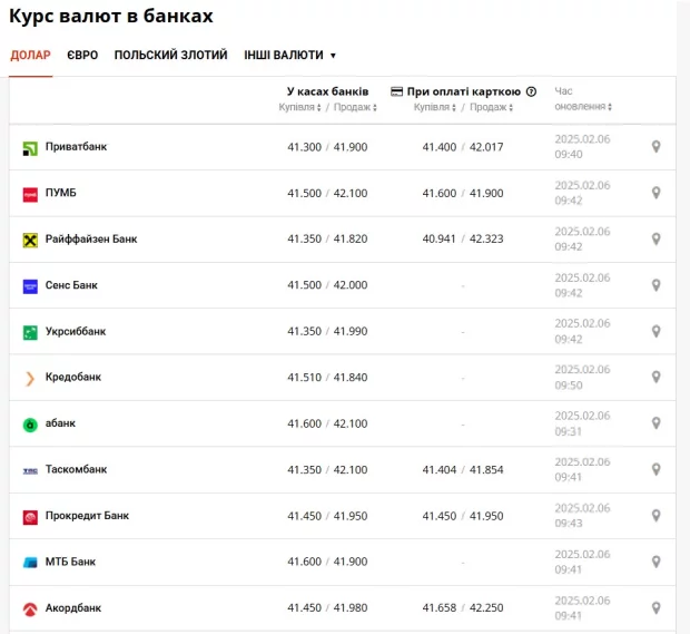 Валютні курси, що встановлені Національним банком України на сьогодні, 6 лютого, мають наступні показники: курс долара США зараз дорівнює 41,6584 гривень за 1 долар. Курс євро наразі складає 43,4081 гривень за 1 євро.