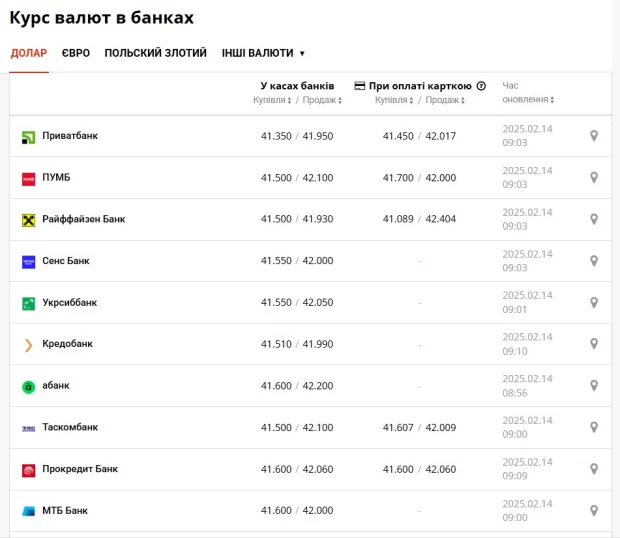 Валютні курси, що встановлені Національним банком України на сьогодні, 14 лютого, мають наступні показники: курс долара США зараз дорівнює 41,7996 гривень за 1 долар. Курс євро наразі складає 43,4361 гривень за 1 євро.